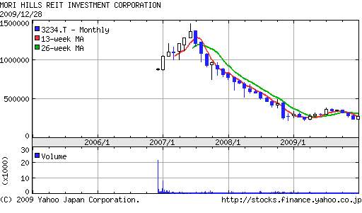 おっさんも、 REIT(リート;不動産投資信託)へ参入し、 あの六本木ヒルズのオーナーになりました♪(笑) (オーナーといっても、、かなり!!部分的ですが、、笑) 今回のオススメ投資先は、 3234 森ヒルズ投資法人 です♪ (2009年12月にも、追加投資しました!!) 森ヒルズ投資法人ですが、、 あの!! 森ビルグループが運営しているファンドです♪ スポンサード リンク 組み入れ銘柄としては、、 ・アークヒルズや、 ・六本木ヒルズや、 ・元麻布ヒルズの!! を代表とする、、 東京の港区を中心としたプレミア物件です♪ このファンドへ投資すれば、、 あなたもプレミア物件のオーナーになれるのです♪ ※おっさんのオススメ推薦図書 『ヒルズ挑戦する都市』 を読まれてから、投資されると納得だと思います♪ でも、この本を読んでしまえば、 → 8割以上!!の個人投資家が森ヒルズリートへ投資されることでしょう♪ 現在、 ・一口あたり=27万円 配当金は、、 ・年間=2万円 ですから、、 → 配当利回りは、『約7%も!!』あるのです♪ 株価(基準価格)だって、、 → 2007年5月に、140万円超え!! までに達したREITですから、、 現在、かなりお買い得です♪ 1口当たりの純資産額は、 → 『56万円』ですから、、 現在、 『PBR=0.48倍』での投資が可能な水準です♪ スポンサード リンク 詳しくは、、 物件資産合計 2128億円 有利子負債 1140億円 純資産 893億円 森ヒルズリートの時価総額 437億円 森ヒルズリートの株価 = 274900円 予想分配金 = 20600円/年 利回り = 7.49% PBR = 0.48倍 株価の最高値 =146万円(2007年5月) しかし、、 現在のREIT市場では、、 『利回り=7%』は、むしろ普通です。 『10%以上のリート』も存在している中、 おっさんが、何故!? 森ヒルズリートへ投資したかというと、、 ・六本木ヒルズが好きだから♪ という理由もありますが、、(笑) (よく映画を見に行きます♪) 何よりも!! ・東京の港区の一等地に物件を多数もっていること♪ → つまり、、価値が下がりにくい♪ → 今後も、絶対に出てこない!一等地。 またさらに!! 今後も、森ビルから優良資産を購入していく可能性がある♪ 実際、2008年3月にも、 ・アークヒルズの一部を追加取得!!しております♪ また、 森ヒルズの株式の『30.7%』は、 森ビルが継続保有しており、 今後も、 優良資産を不動産投資信託へ売却!!し、 ・新たな不動産開発プロジェクトを立ち上げていくことでしょう♪ 森ビルは、 上海でも、上海ヒルズ計画が完了、竣工しており、 ・日本を越えて、世界中で事業を展開しているグループ であり、 おっさんもとても注目しております♪ よって、 もっと利回りが高いREITは、たくさんあるが、、 あえて!! ブランド力で考えて投資したのが本心です♪ 森ヒルズREITのレバレッジは、 総資産有利子負債比率 = 約50% と、 レバレッジ=『約2倍』であり、 十分な安全域を保った、 レバレッジコントロールであると思います♪ 今後も、 ・総資産有利子負債比率 = 45〜60% に保って運営していく方針とのことです。 まあ、普通に考えて、、 ・もう買いたくても買えない!!土地に建っている、 → プレミアム物件 を、 取得価格以下(PBR=0.4倍)で投資できて、 『7%』の配当金を貰って♪ さらに!! キャピタルゲインが期待できる♪ ので、 まあ、良い投資と呼べるのではないでしょうか?? 森ビルにとっても、、 新たな不動産投資開発を行うには、 → 巨額の資金が必要不可欠!!であり、 傘下に、リートを運営する!ことで、 → 安定的に売却先を確保する!!ことができますから、、 その結果、機動的に!! 資産を回転させることができ、 資金調達の面で、かなりのメリットがあるのです♪ ですから、、 森ビルにとって、 → 傘下のREITが成功すること、 → 傘下のREITの運用パフォーマンスが良好なこと、 は、事業運営上、とても重要なことなのです♪ つまり、、 ・森ビル株式会社 と、 ・森ヒルズリート法人の投資家 は、『Win−Win』となりえるのです♪ 今後も、 ・森ビルからの優良資産の購入♪ を期待して、森ヒルズに期待していきたいと思います!! もちろん、、価格がこれ以上、、下がるならば、 → 迷わず、買い!!ですね♪ いや〜〜REIT、なかなか楽しいですね〜〜♪ ・都心のプレミア物件で、 ・年間の投資利回りが7%、 ・しかも、管理はプロにお任せ♪で、 ・売買はいつでも自由に行えて、、 ・売買手数料も、株式投資と同じ♪ これって、不動産投資としては、かなり楽チンですよね〜〜♪ 一方、、自己資金で不動産投資するのは、 リスクも高く、かなり大変です。。 いやはや、、おっさん、 REITを、これまで、あなどってました。。(笑) それにしても、、 REITの価格が安い時に、、投資できてラッキ〜〜♪ さて、それにしても、 現在、依然として、 REIT(不動産投資信託)市場が暴落!!しております。。 2007年5月の、 → 『2500ポイント』オーバーから、、 現在、2009年12月では、、 → 『870ポイント』、、と、 なんと!! ・『約3分の1〜4分の1』 になっております。。 株式投資でいう、、PBR、 ・純資産倍率