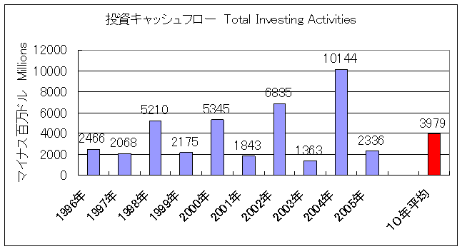 P&Gの過去十年間の『CF(キャッシュフロー計算書)』です。 『10年合計』に注目してみていきましょう♪ 十年間合計の『フリーCF』は、「+25689」ですから、 P&Gは、 『営業CFの範囲内!』で投資を行っていることとなり、 『体力の範囲内』で投資を行っている、 堅実で!リスクが少ない!経営を実行していると言ってよいでしょう♪ ※『P&G投資徹底分析 長期投資の王道銘柄♪』 スポンサード リンク ※『フリーCF=営業CF−投資CF』 フリーCFが『プラス!』ということは、 事業の発展に必要な投資額(=投資CF)を資金調達をしなくても、 事業活動を行って得た利益の範囲内(=営業CF)でまかなえるということです♪ また、十年間累積の財務CFは、「−20720」ですが、 この内、十年間の累積配当額は、「−18969」ですから、 P&Gのファイナンス部門の大部分の行動は、『配当金の支払い』であります。 以上、P&Gの十年間の『CF分析』のまとめとして、 『事業拡大の為の資金=(投資CF)』へ惜しまず分配しつつ、 株主への配当もしっかりと行っている、 『キャッシュリッチ』な企業と呼べるでしょう♪ この姿勢、日本企業にも見習って欲しいものですね!! P&Gは、 『アメリカへの税金』・『株主への配当金』をしっかりと支払った上で、 『さらなる!成長』をしているのですから♪ ![]() ![]() ![]()